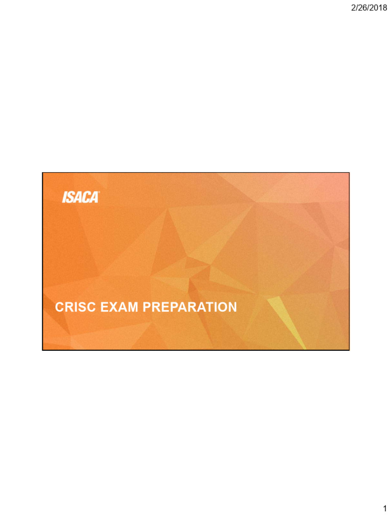 CRISC Spring 2023 Review Course ISACA Greater Washington D C Chapter