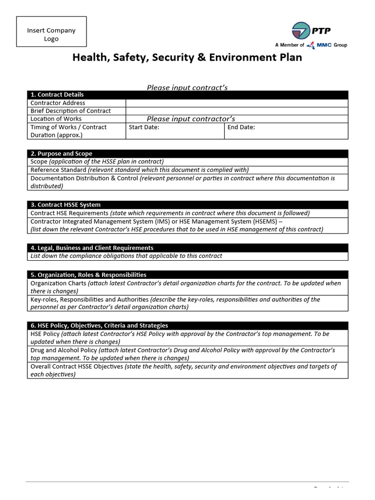 HSSE Plan Template PDF Occupational Safety And Health Hazards