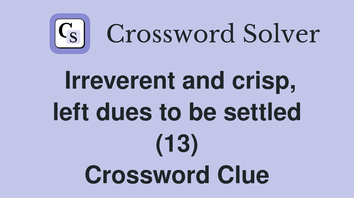 Irreverent and crisp left dues to be settled (13) Crossword Clue