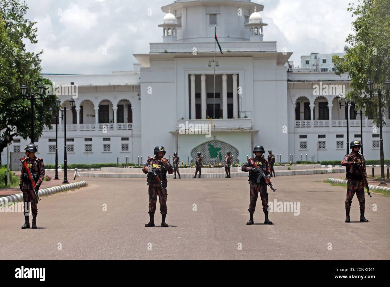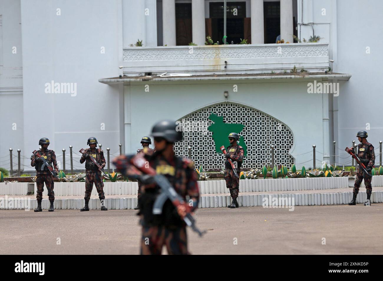 Boarder Guard Bangladesh (BGB) personnel stand guard on the premises of