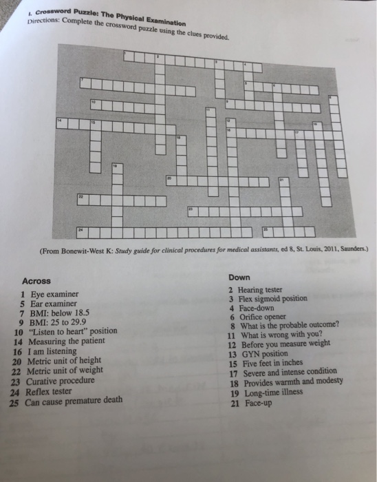 SOLVED: Texts: G Crossword Puzzle: The Physical Examination Directions