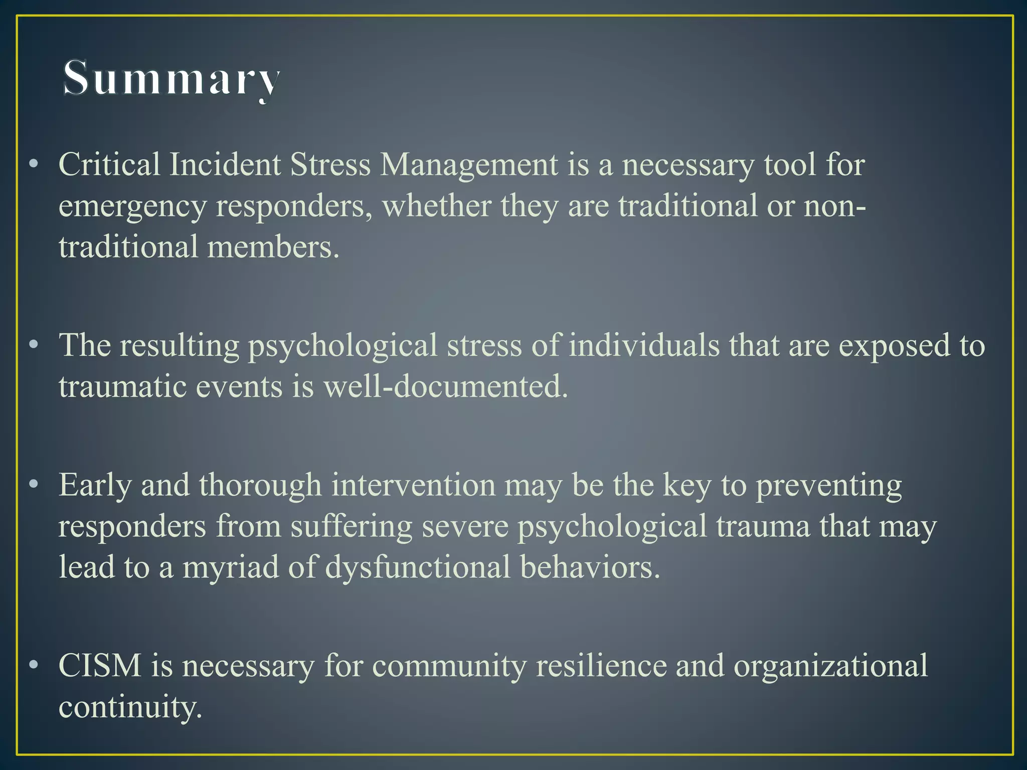 (PPTX) CRITICAL INCIDENT STRESS MANAGEMENT (CISM) A PROGRAM To Address