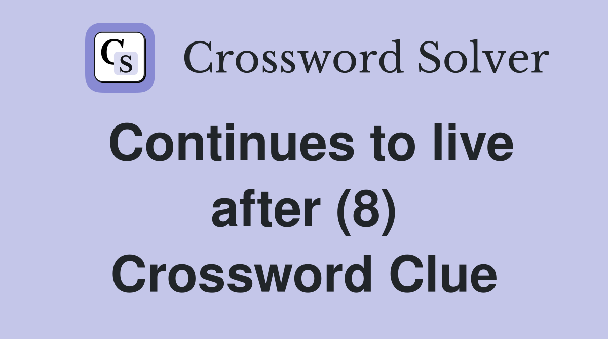 Continues to live after (8) Crossword Clue Answers Crossword Solver