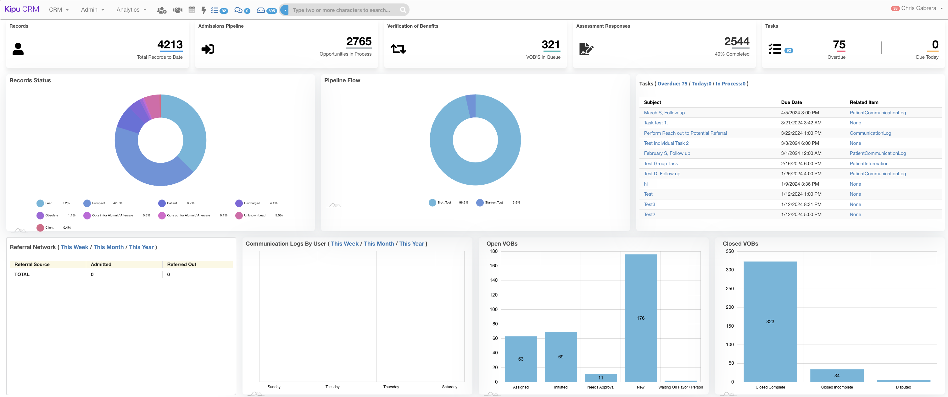 Kipu CRM Landing Page Dashboard Kipu CRM