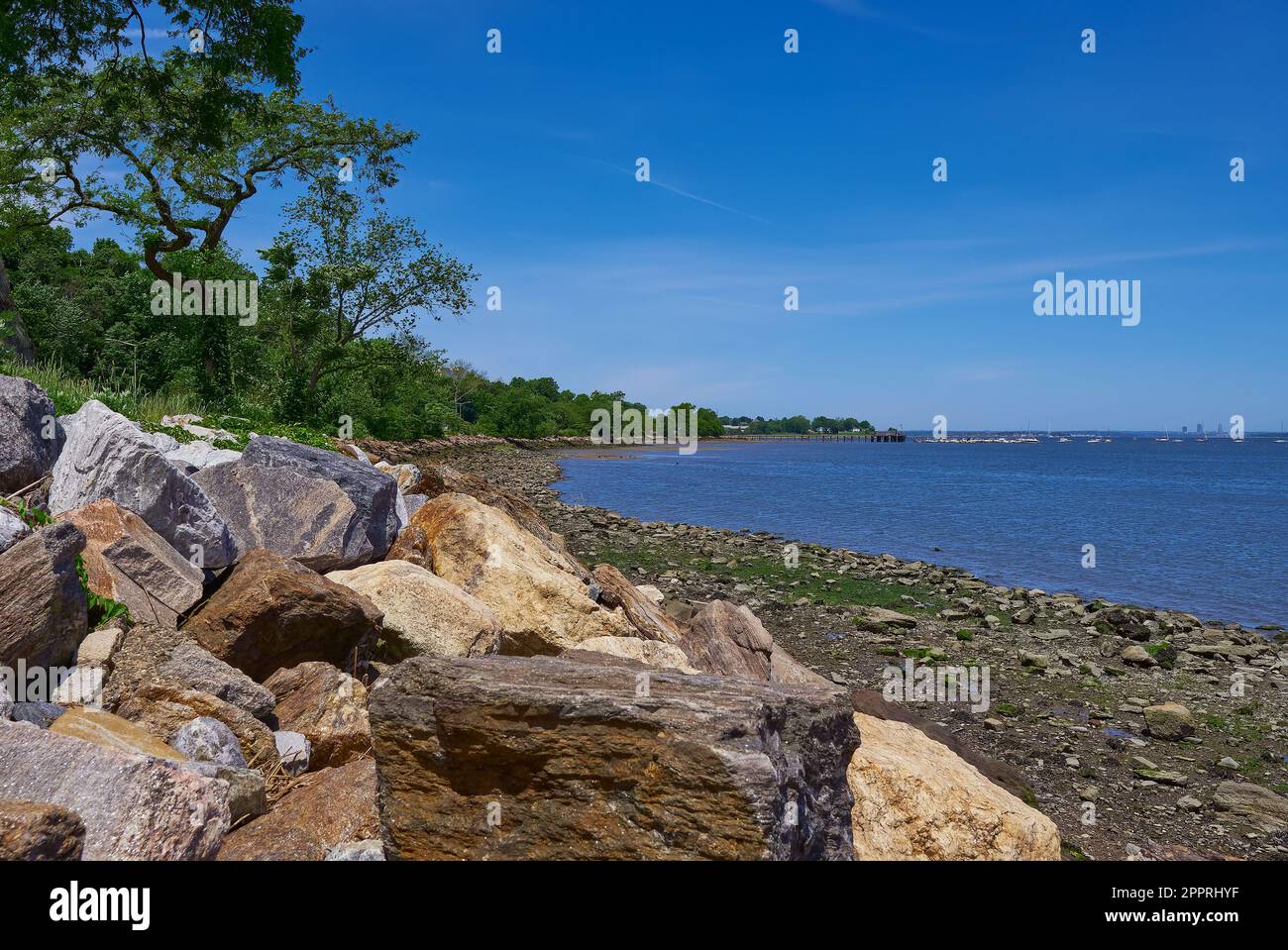 Scenic photo of Bayside NY shoreline taken from Crocheron Park Stock