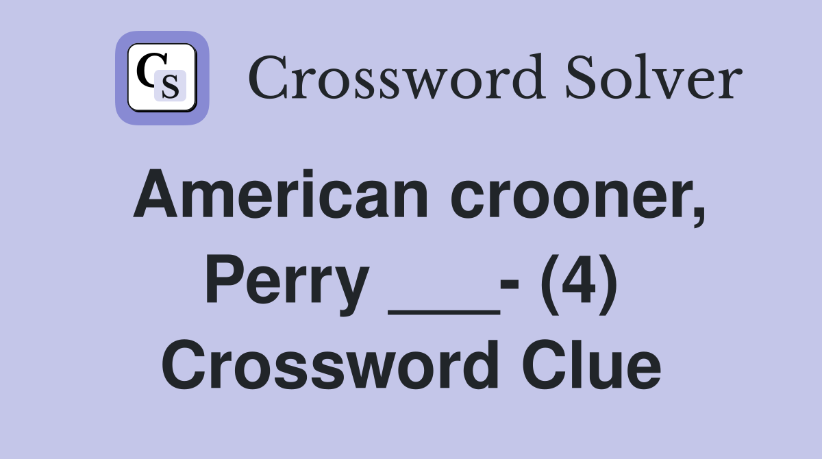American crooner Perry (4) Crossword Clue Answers Crossword