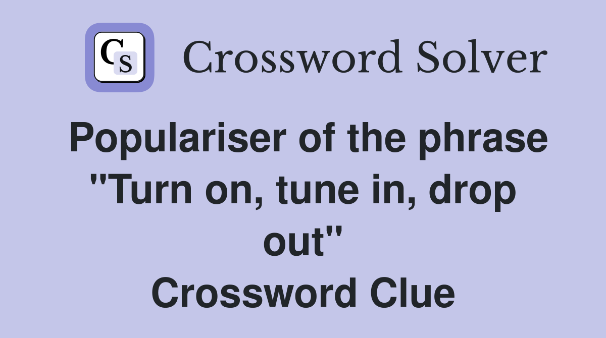 Populariser of the phrase quot Turn on tune in drop out quot Crossword Clue