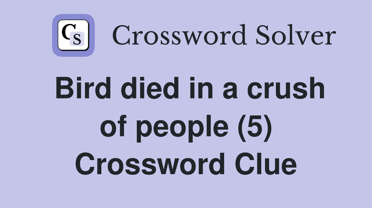 Bird died in a crush of people (5) Crossword Clue Answers Crossword