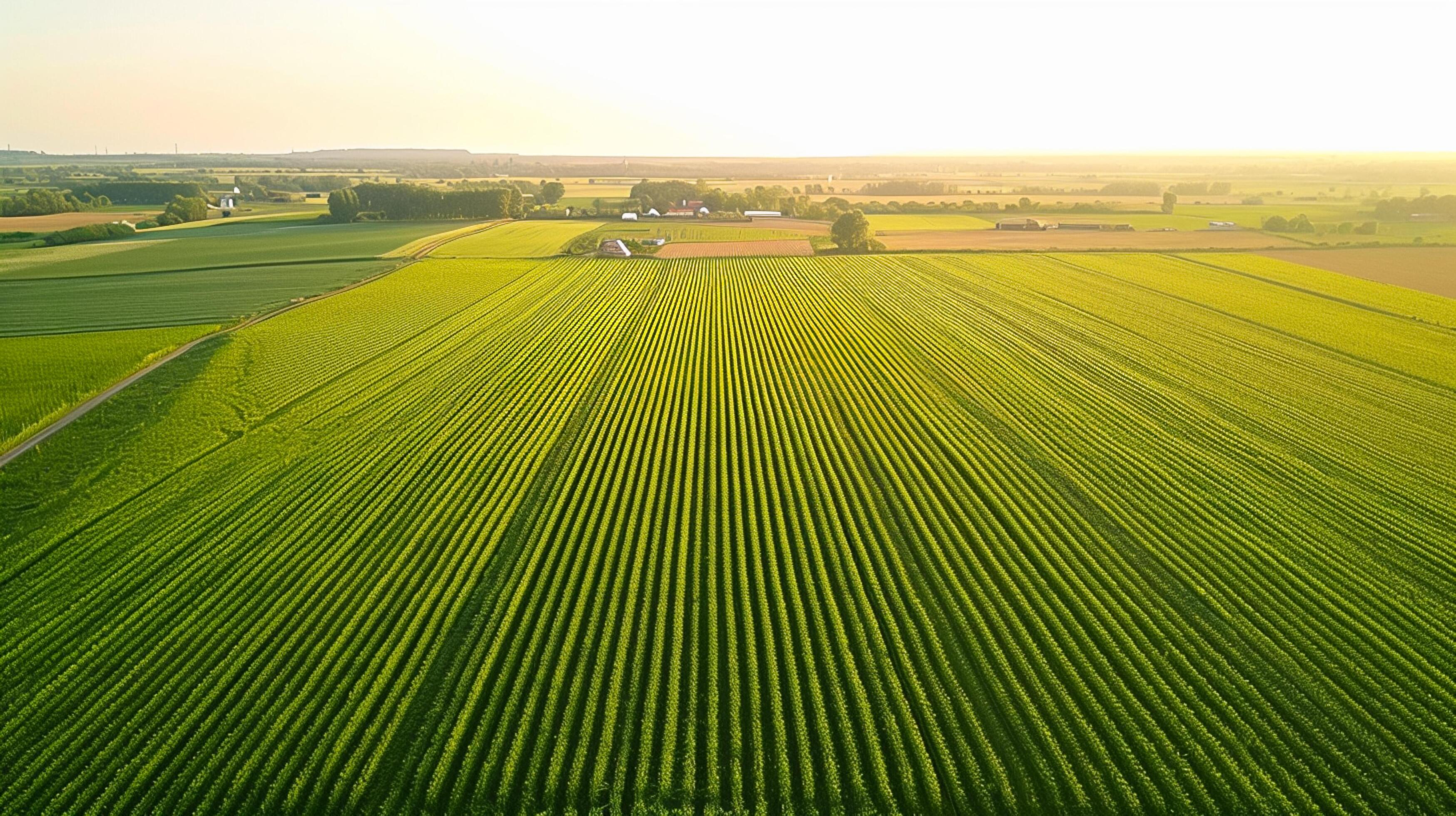 AI generated aerial view captures large lush green field with crops