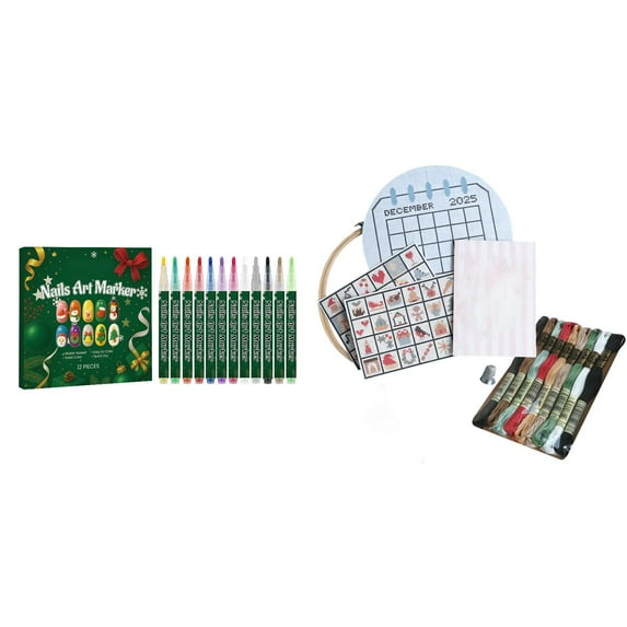 12 Color Nail Art Pens Set Cross Stitch Advent Calendar 2025