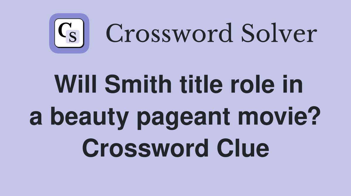 Will Smith title role in a beauty pageant movie? Crossword Clue