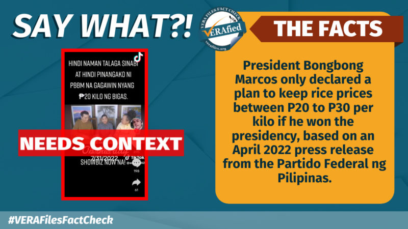 VERA FILES FACT CHECK: Claim that Marcos Jr did not promise P20 rice