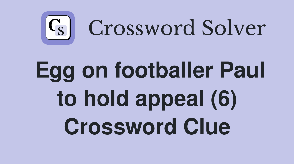 Egg on footballer Paul to hold appeal (6) Crossword Clue Answers