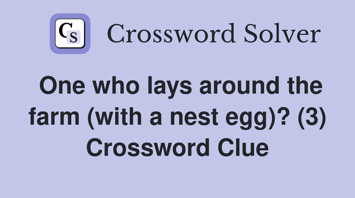 One who lays around the farm (with a nest egg)? (3) Crossword Clue