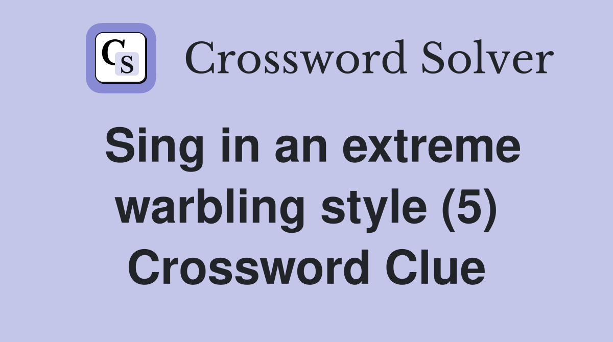 Sing in an extreme warbling style (5) Crossword Clue Answers
