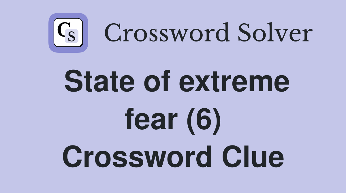 State of extreme fear (6) Crossword Clue Answers Crossword Solver