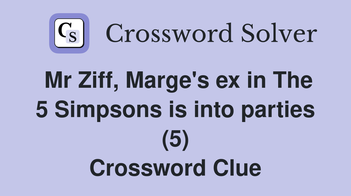 Mr Ziff Marge #39 s ex in The 5 Simpsons is into parties (5) Crossword