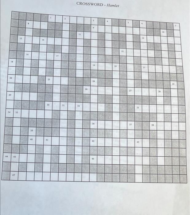 Exploring Hamlet #39 s Vocabulary: Crossword Clues Course Hero