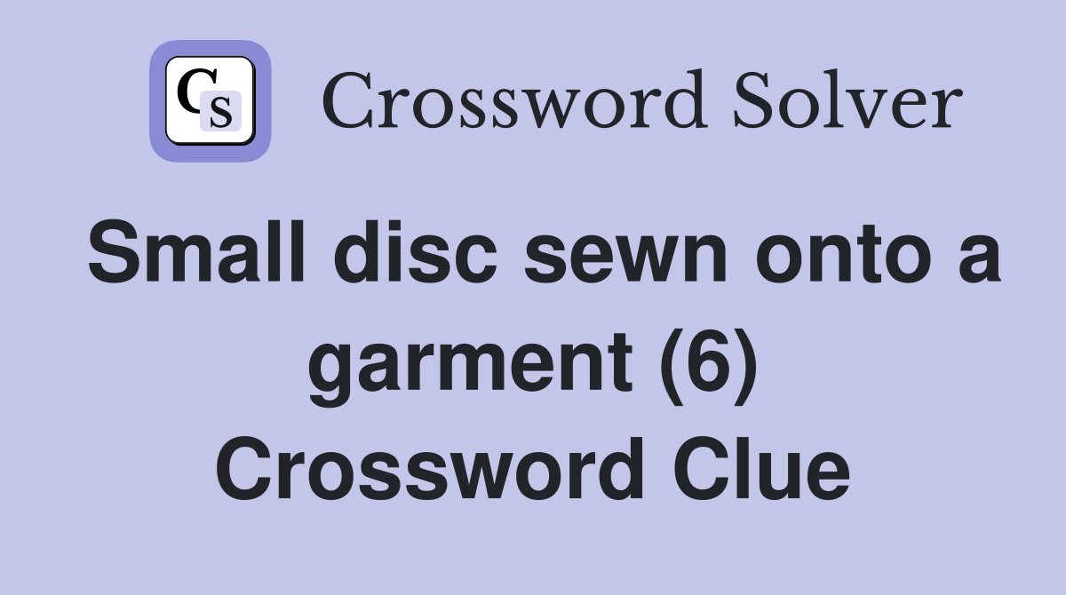 Small disc sewn onto a garment (6) Crossword Clue Answers Crossword