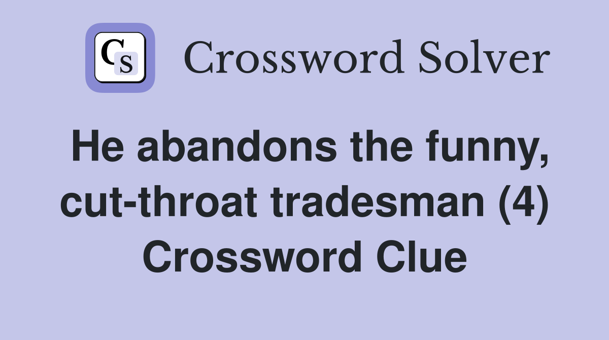 He abandons the funny cut throat tradesman (4) Crossword Clue