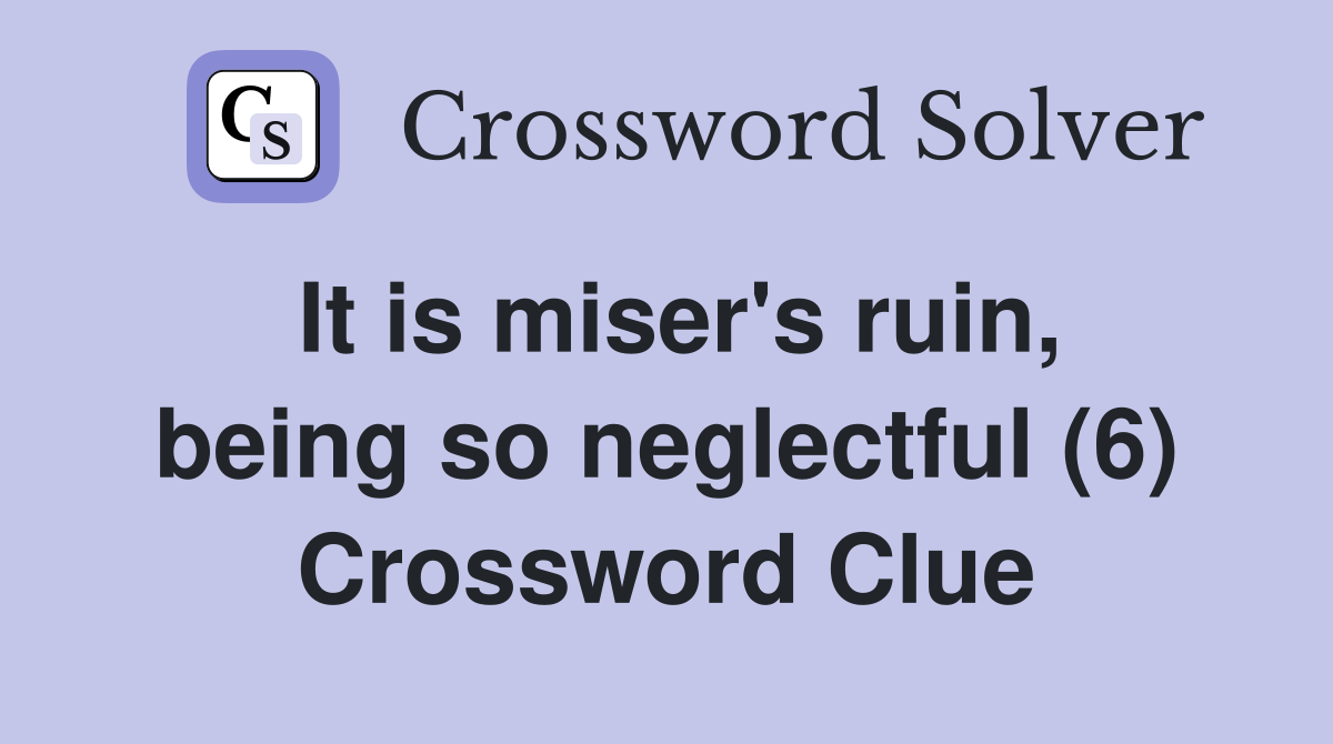 It is miser #39 s ruin being so neglectful (6) Crossword Clue Answers