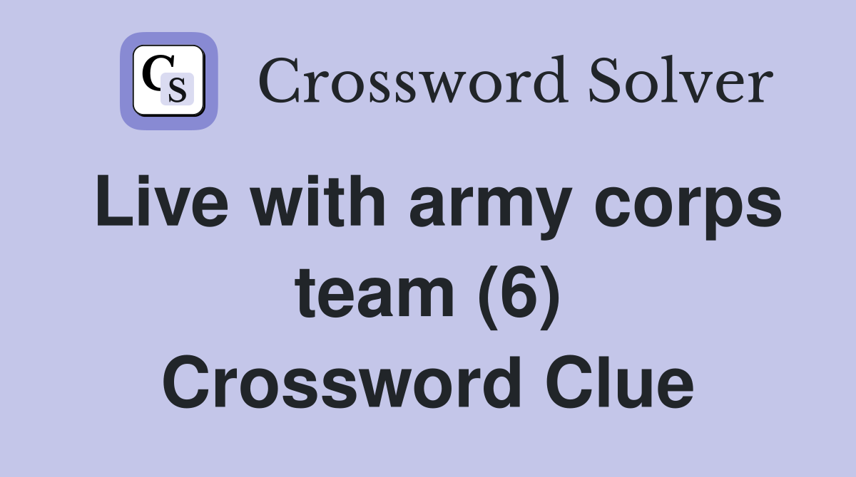 Live with army corps team (6) Crossword Clue Answers Crossword Solver