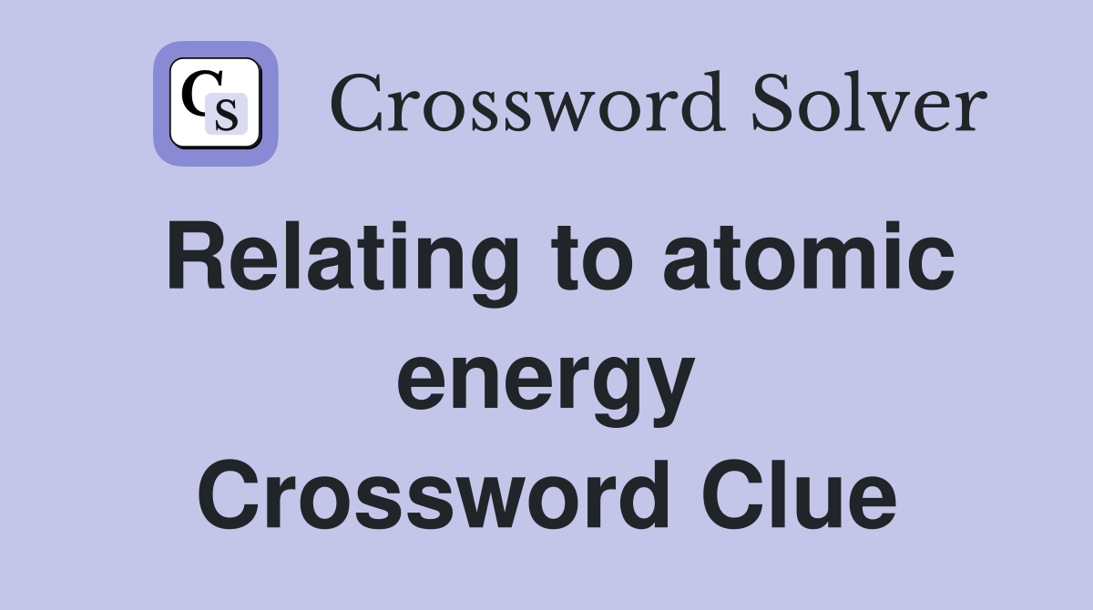 Relating to atomic energy Crossword Clue Answers Crossword Solver
