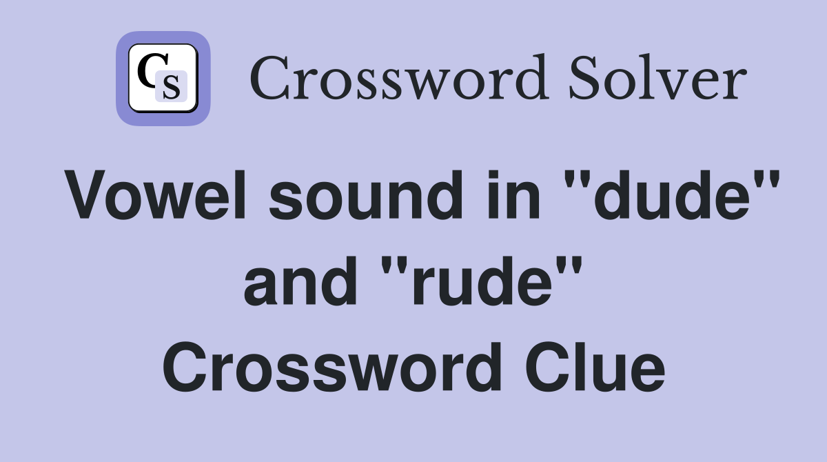 Vowel sound in quot dude quot and quot rude quot Crossword Clue Answers Crossword
