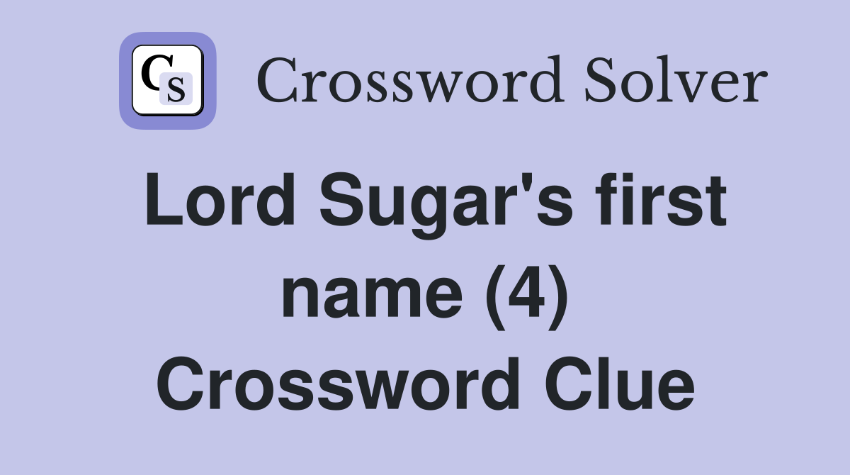 Lord Sugar #39 s first name (4) Crossword Clue Answers Crossword Solver