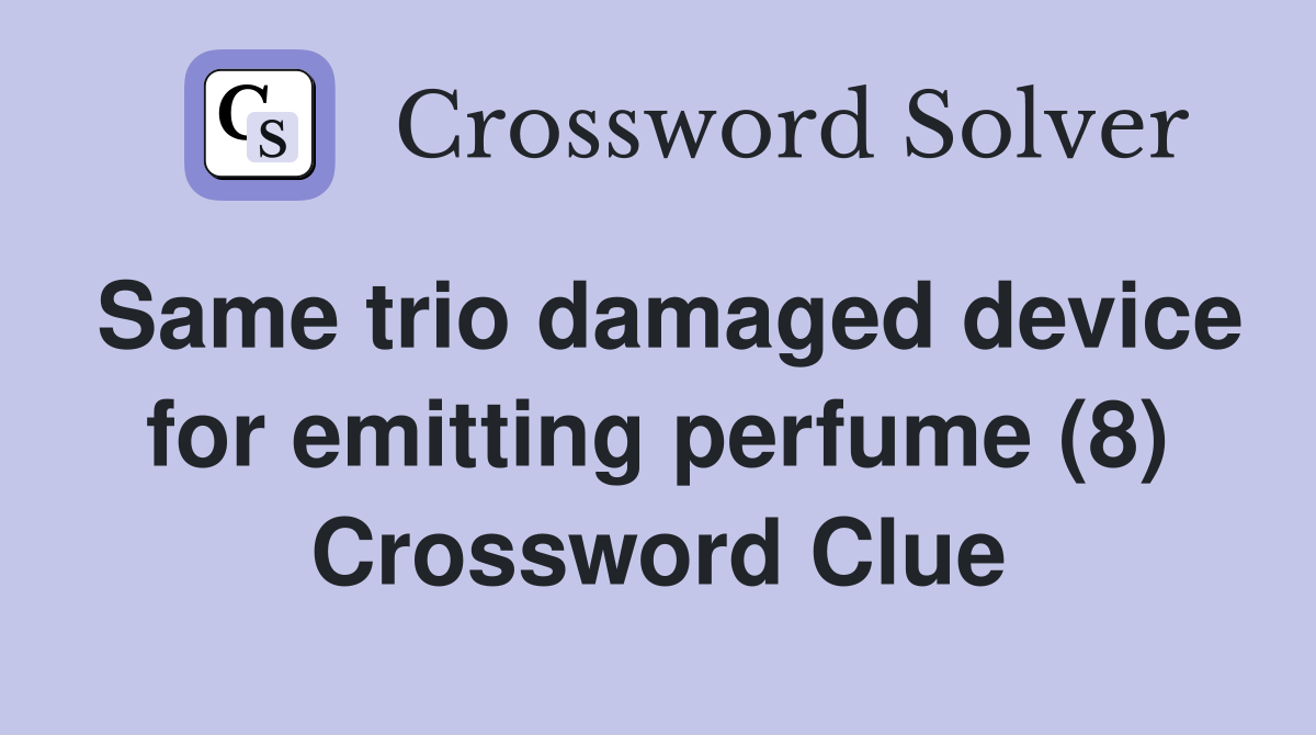 Same trio damaged device for emitting perfume (8) Crossword Clue