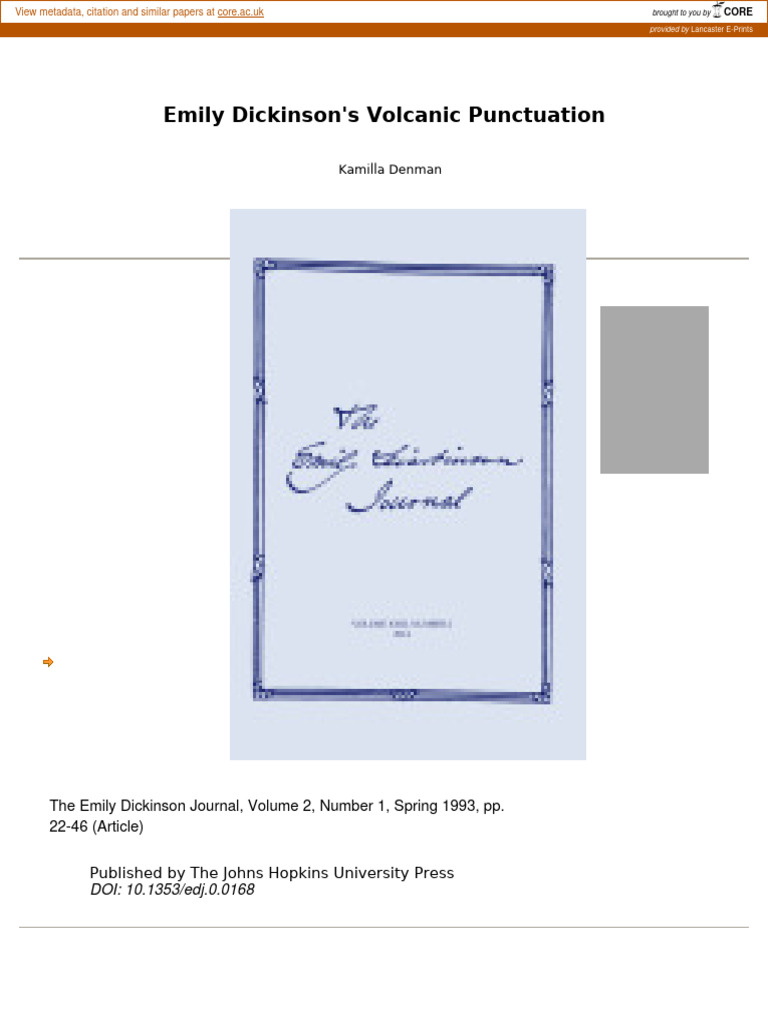 Denman E Dickinson #39 s Volcanic Punctuation PDF Emily Dickinson