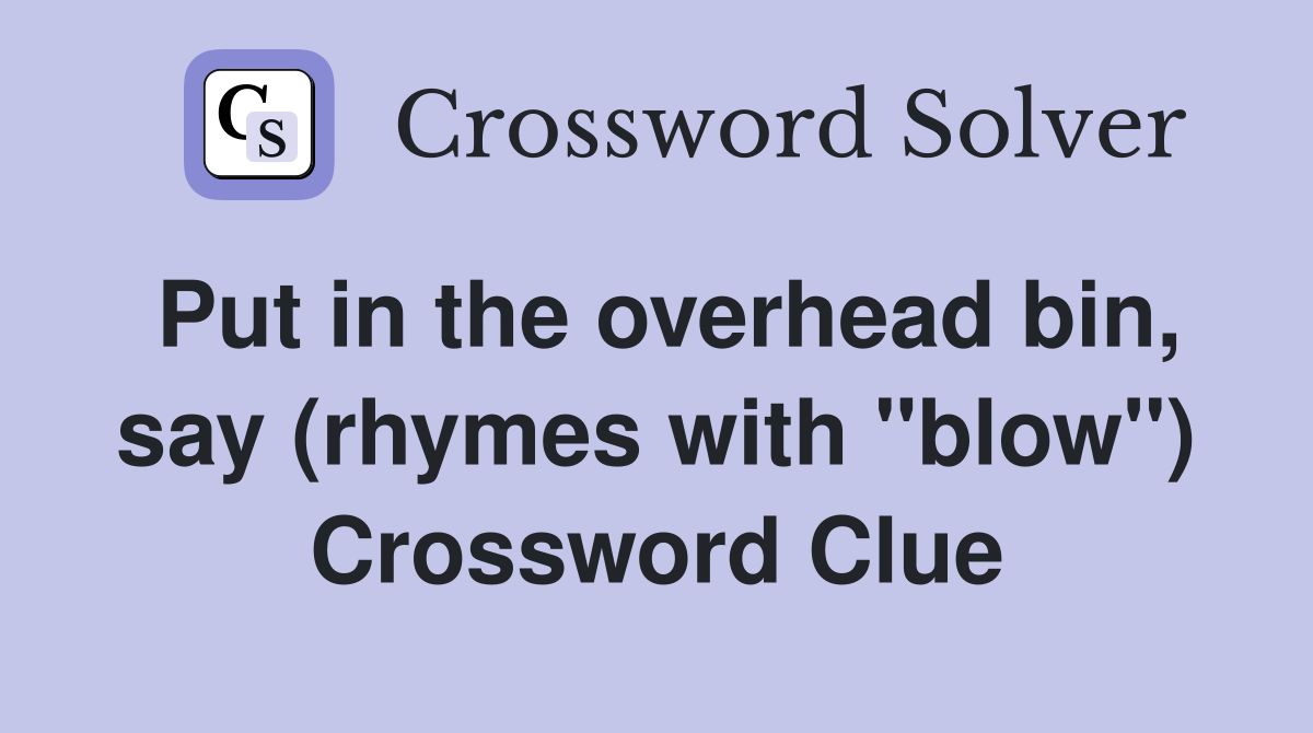 Put in the overhead bin say (rhymes with quot blow quot ) Crossword Clue