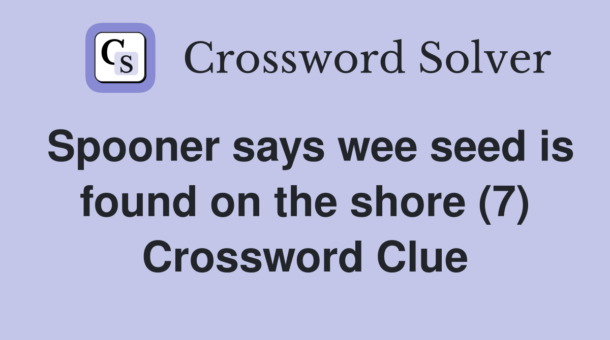 Spooner says wee seed is found on the shore (7) Crossword Clue