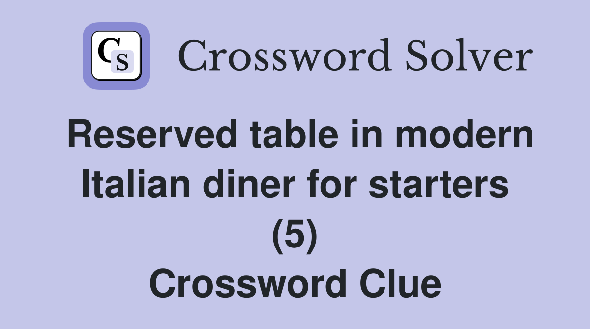 Reserved table in modern Italian diner for starters (5) Crossword