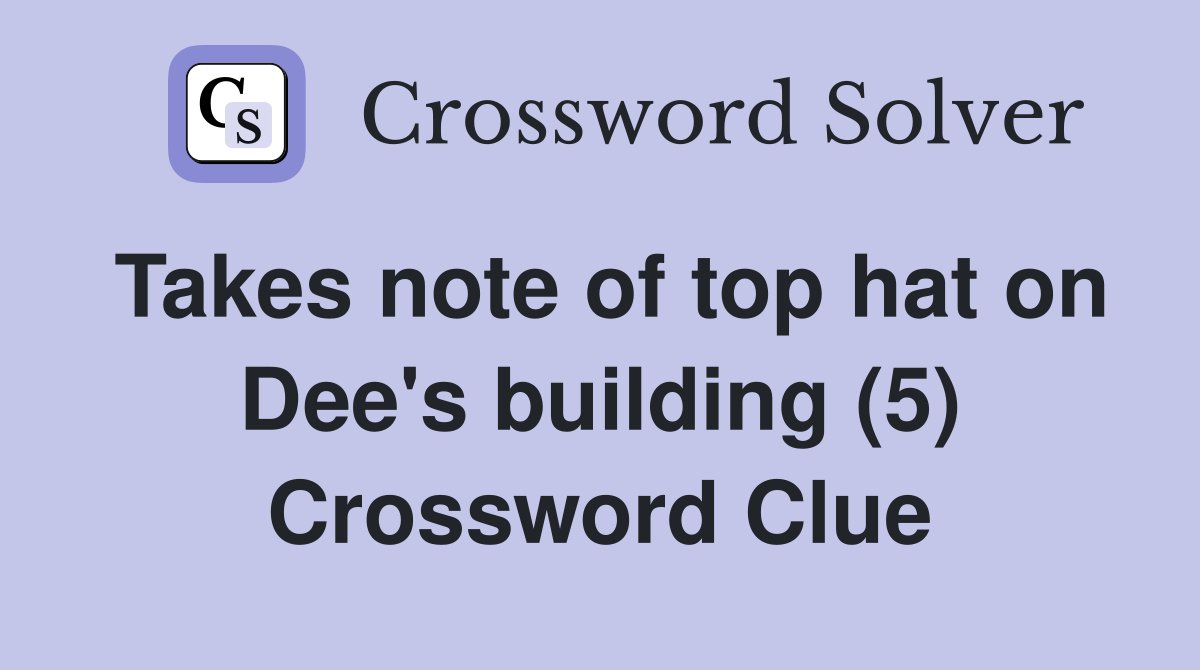 Takes note of top hat on Dee #39 s building (5) Crossword Clue Answers