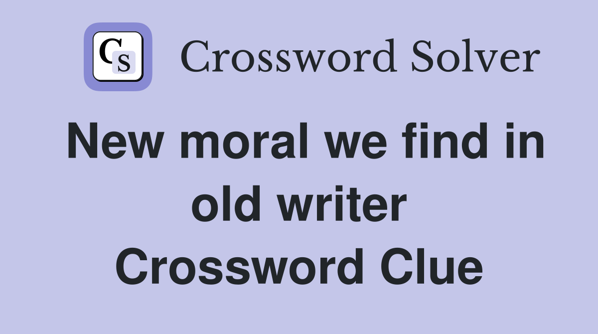 New moral we find in old writer Crossword Clue Answers Crossword Solver