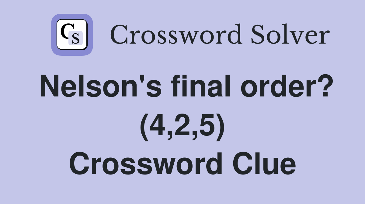 Nelson #39 s final order? (4 2 5) Crossword Clue Answers Crossword Solver