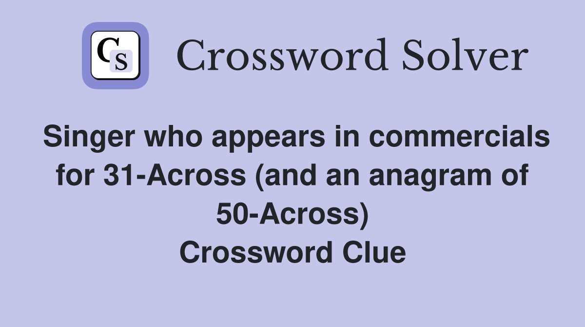 Singer who appears in commercials for 31 Across (and an anagram of 50