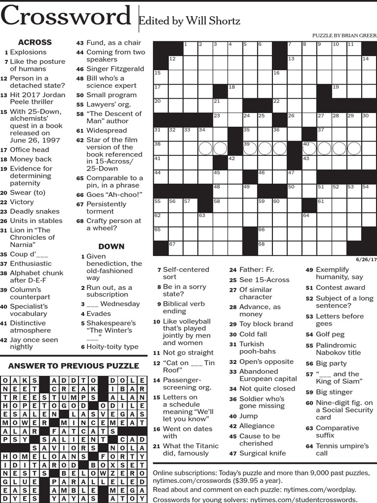 Here are some of the images for Crossword Puzzles New York Times Printable that we found in our website database.