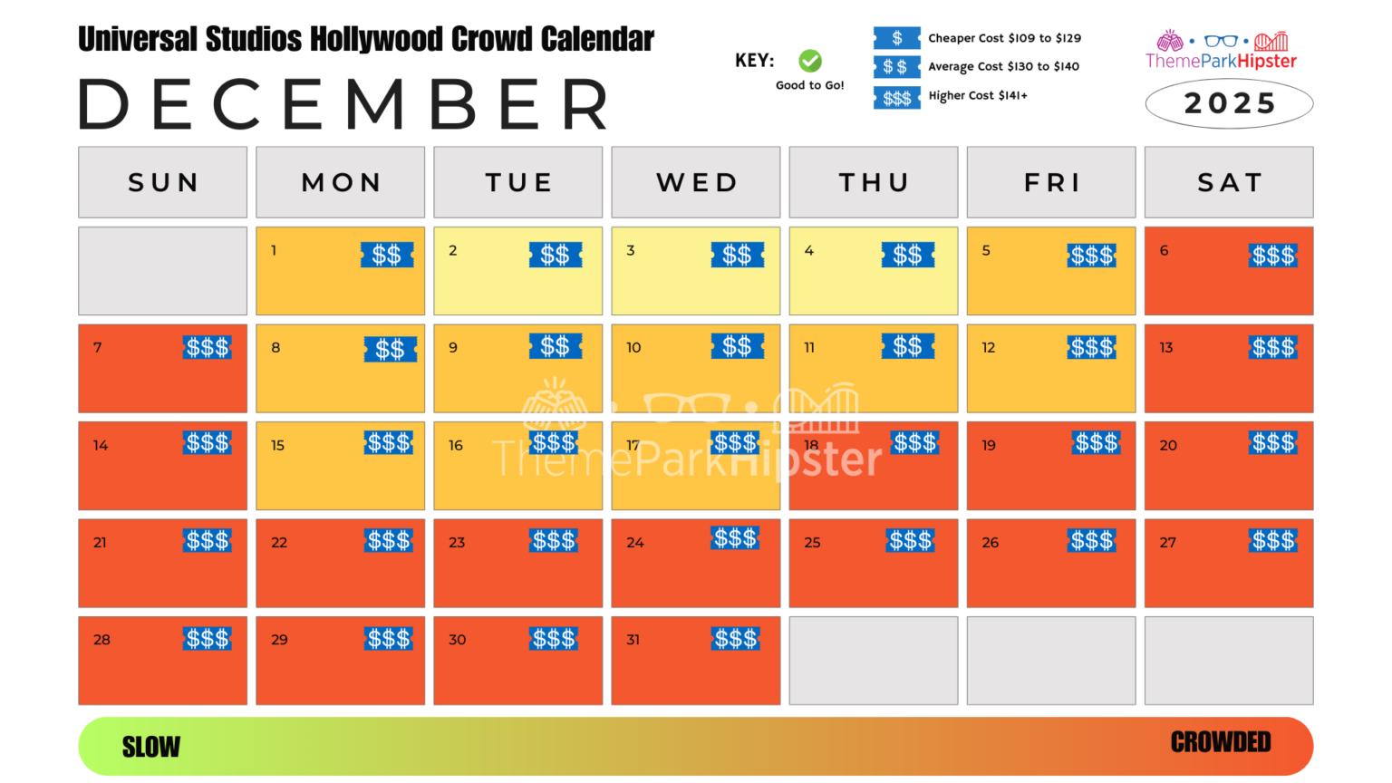 Universal Studios Hollywood Crowd Calendar 2025 (Updated Monthly )