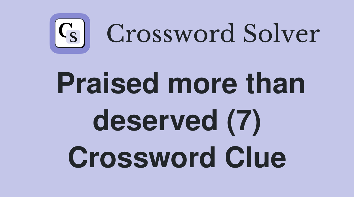 Praised more than deserved (7) Crossword Clue Answers Crossword Solver