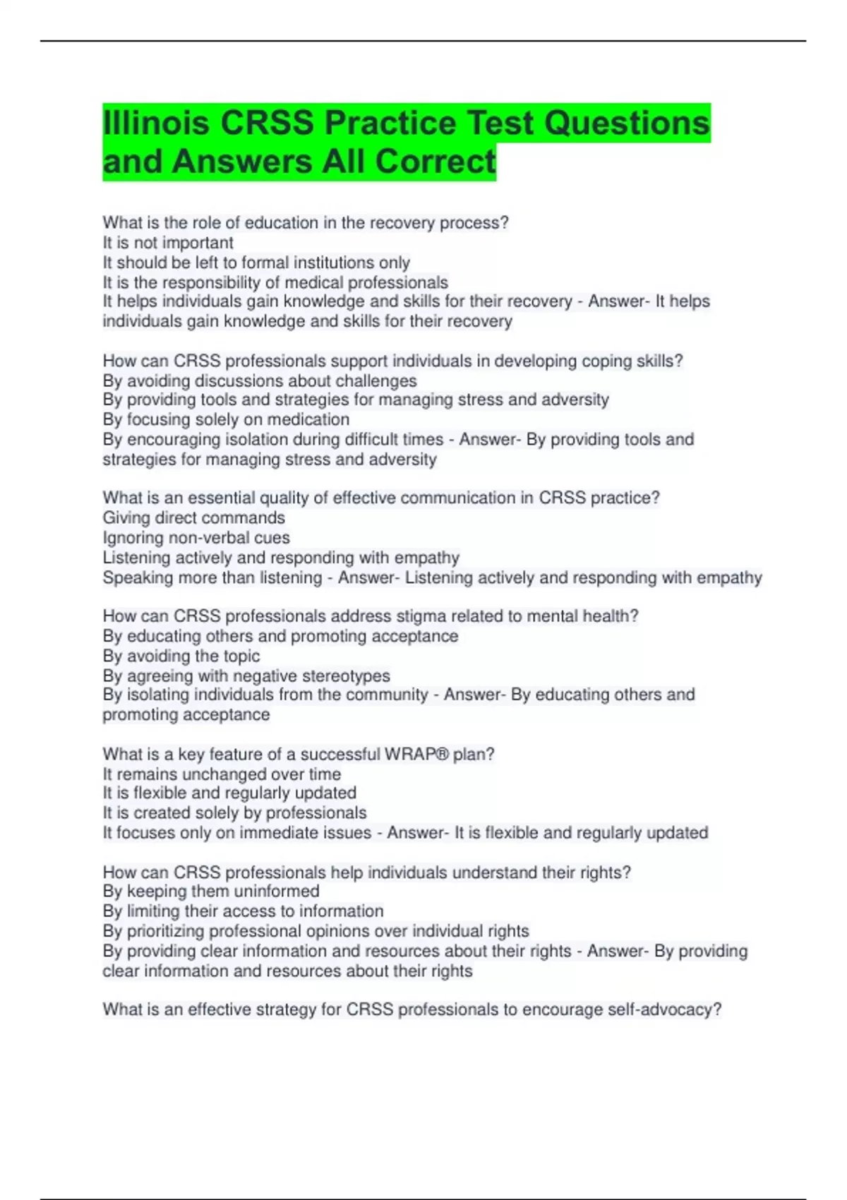 Illinois CRSS Practice Test Questions and Answers All Correct