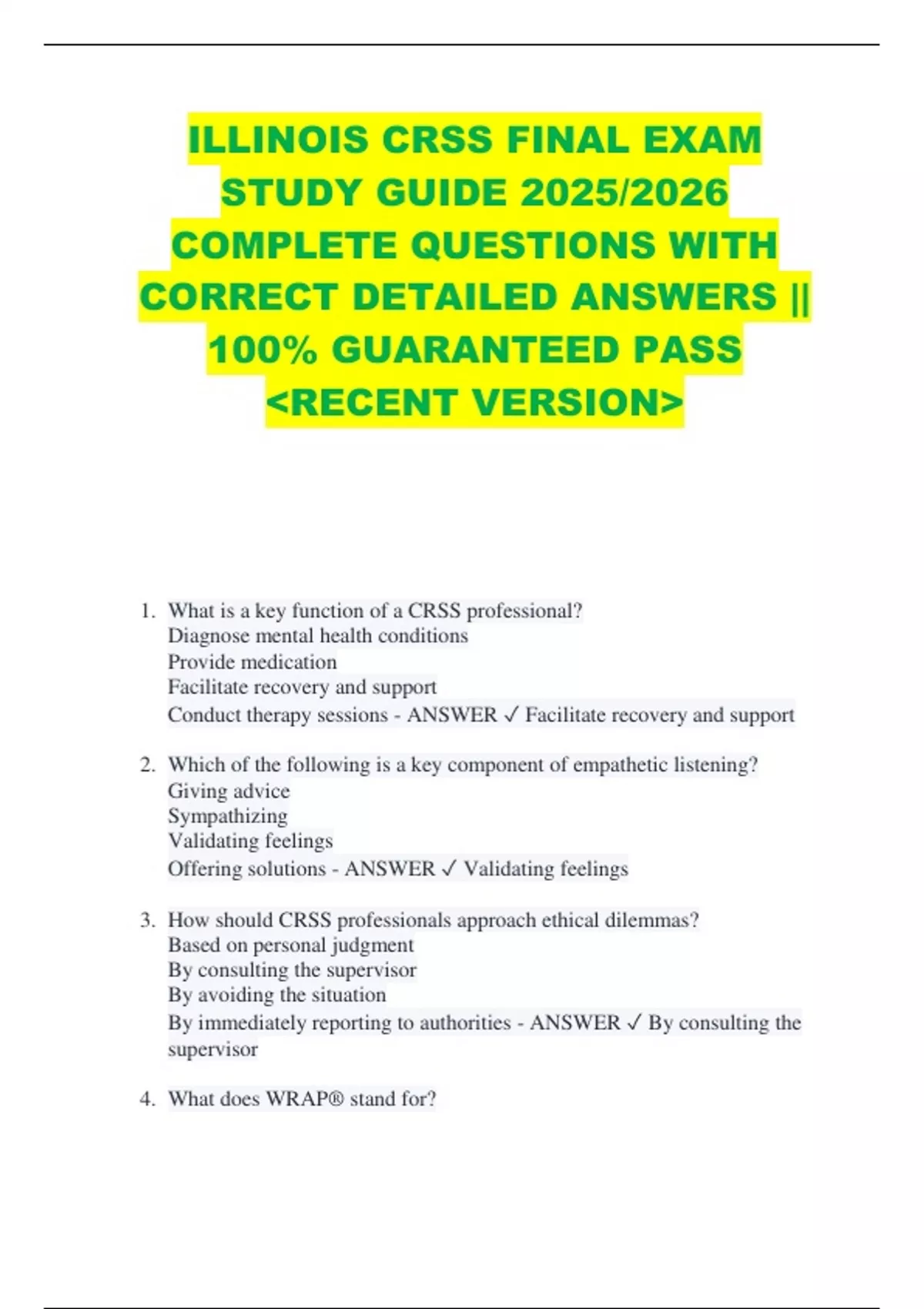 CRSS Illinois CRSS Credential Study Guide (2025) ACTUAL EXAM