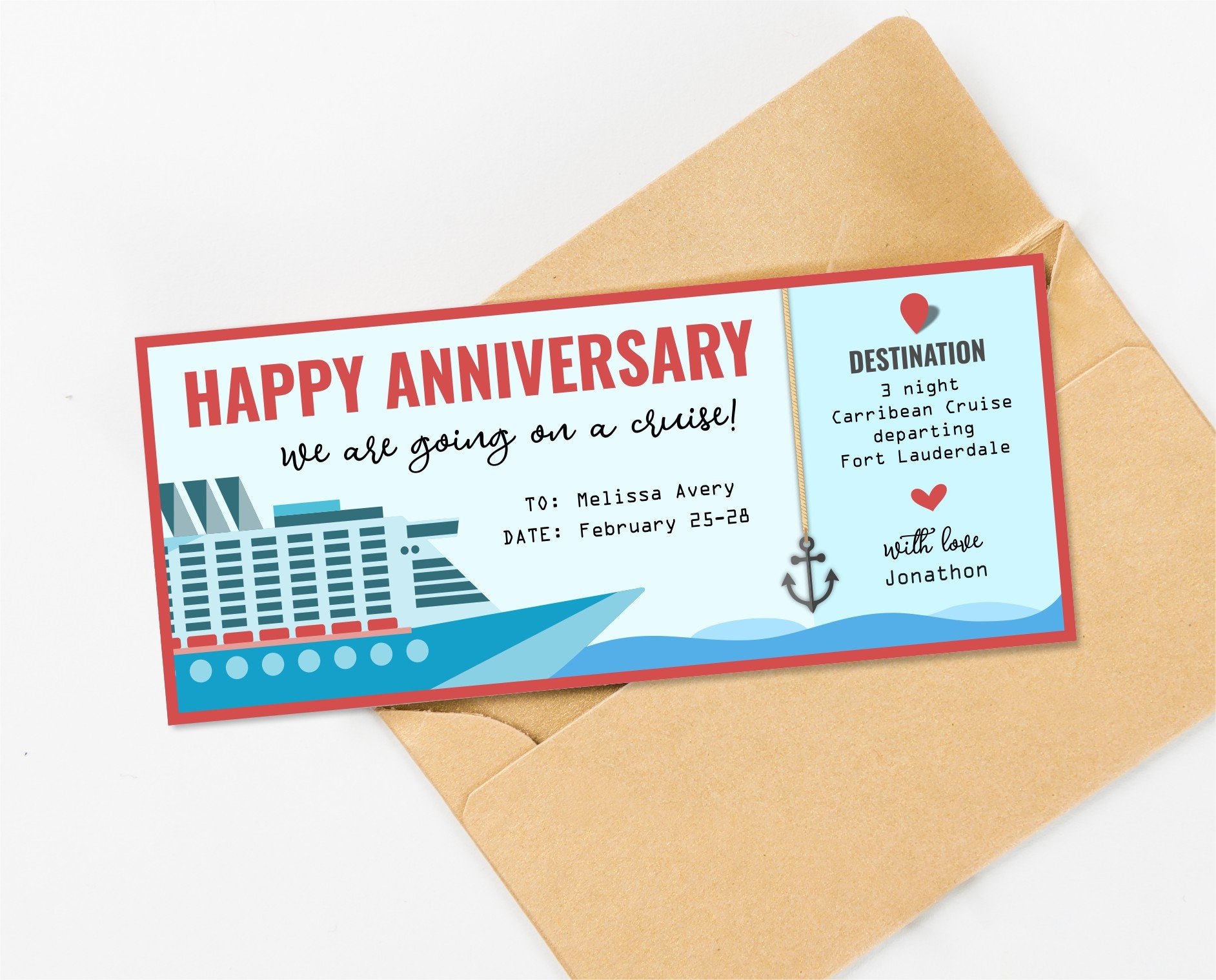 Anniversary Cruise Gift Certificate for Him or Her Printable Fake