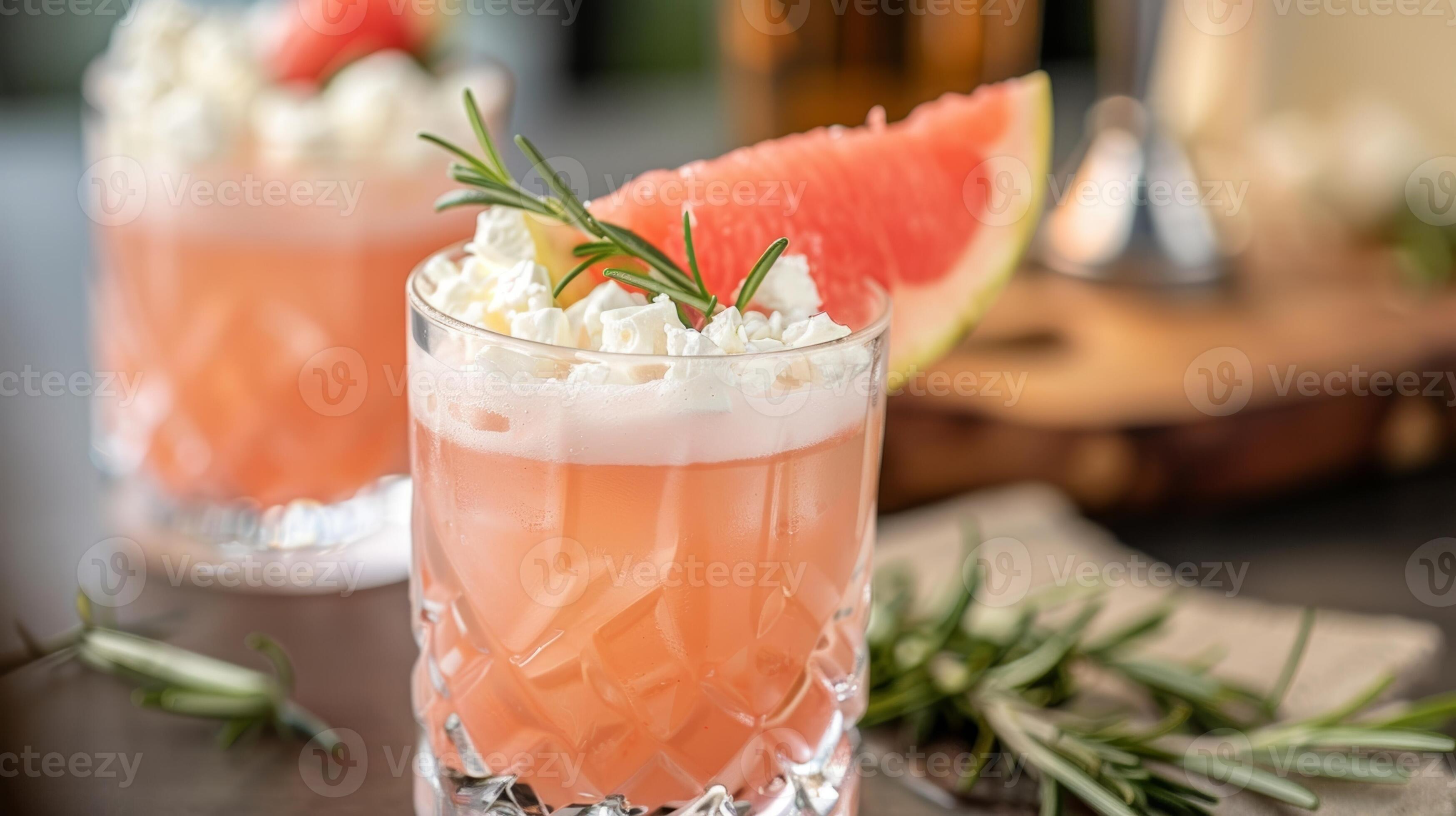 A light and airy mocktail featuring gfruit and rosemary paired with a