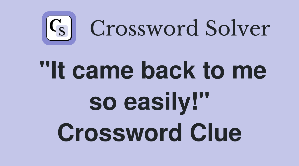 quot It came back to me so easily quot Crossword Clue Answers Crossword Solver