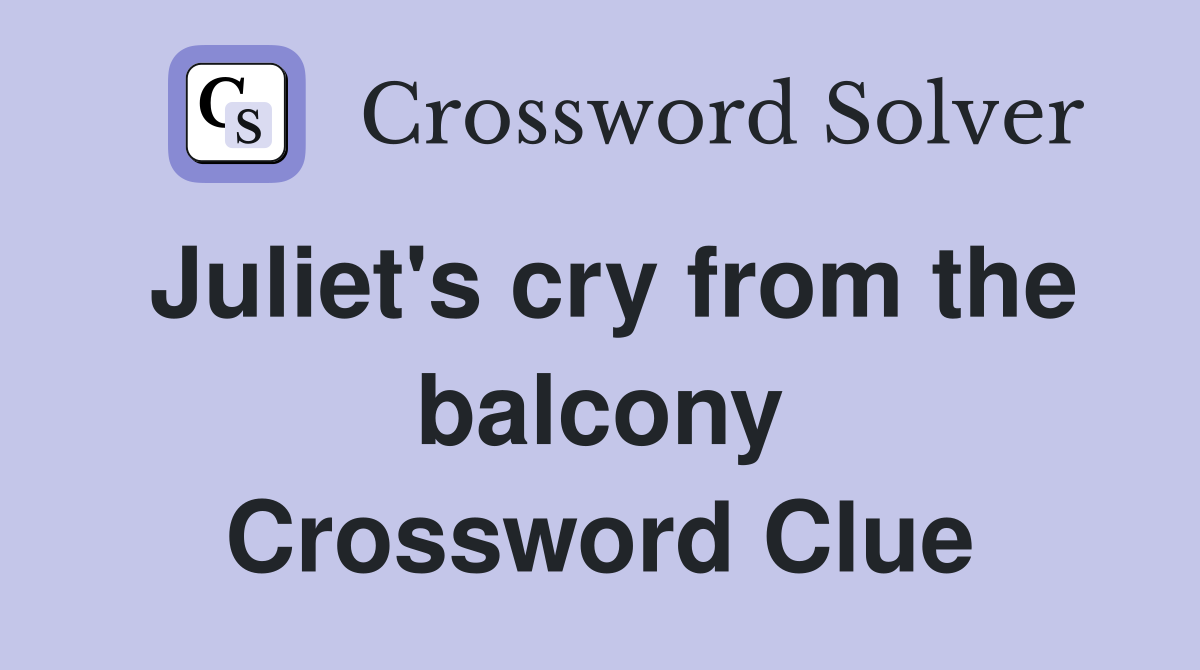 Juliet #39 s cry from the balcony Crossword Clue Answers Crossword Solver