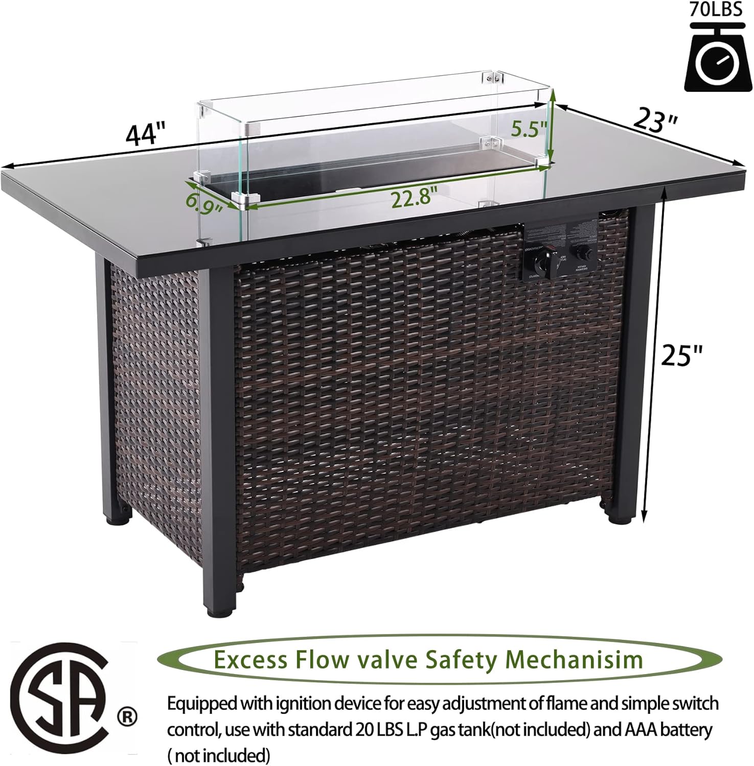 43 in Propane Fire Pit Table Fire Pit Table with Glass Wind Guard