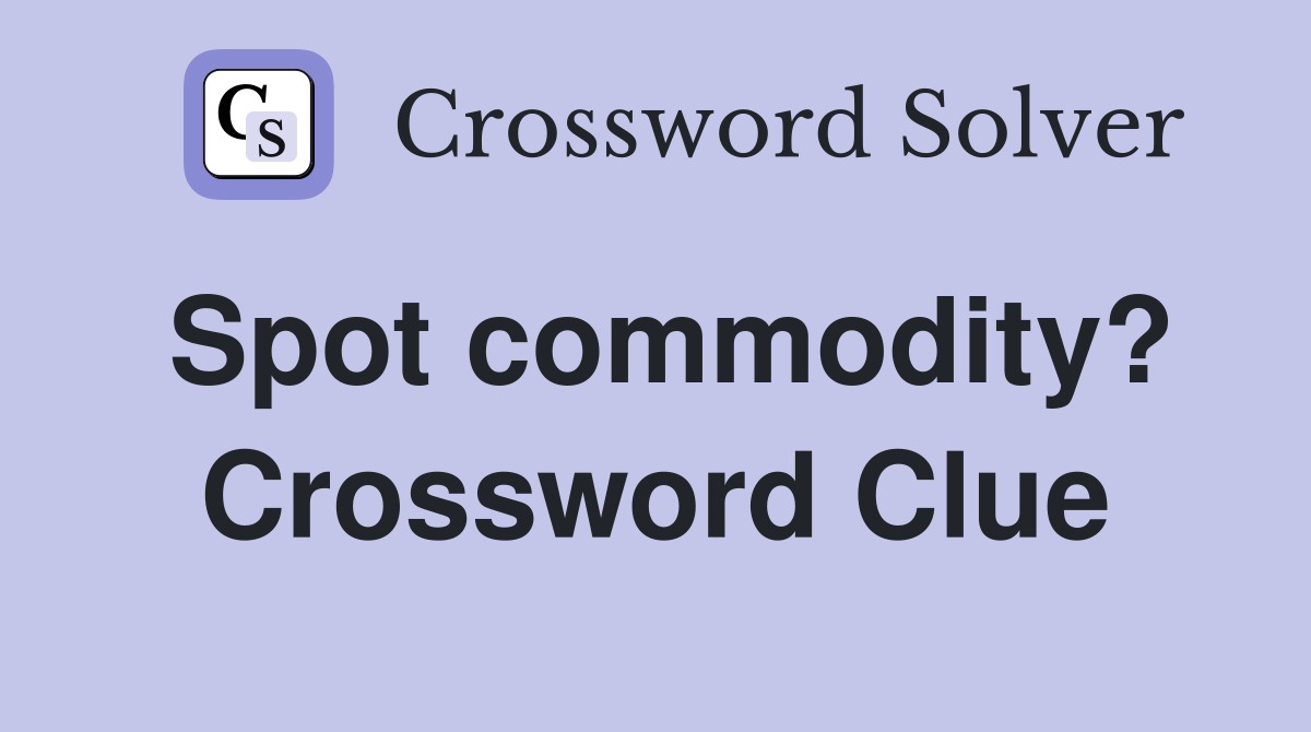 Spot commodity? Crossword Clue Answers Crossword Solver