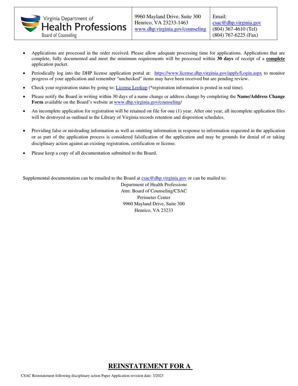 Virginia Reinstatement for a Certified Substance Abuse Counselor (Csac